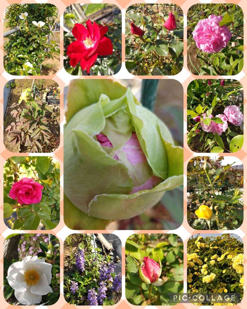 今日の花、牡丹は、「越後乃花新潟の牡丹花競」です。まだ蕾です。去年のpicでは、4月19日に満開になってます。見て下さいね♥お多福ガ―デンのバラ🌹達が次々と咲き出しました🙌🌹💖🌿。