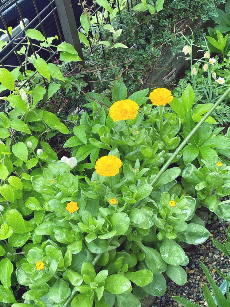 こぼれ種のキンセンカが咲き出しました。