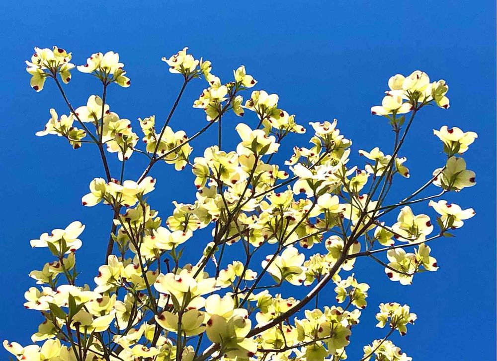 花が咲いてるヤマボウシの木と、葉っぱが出ている木があって、なんでだろう…?
