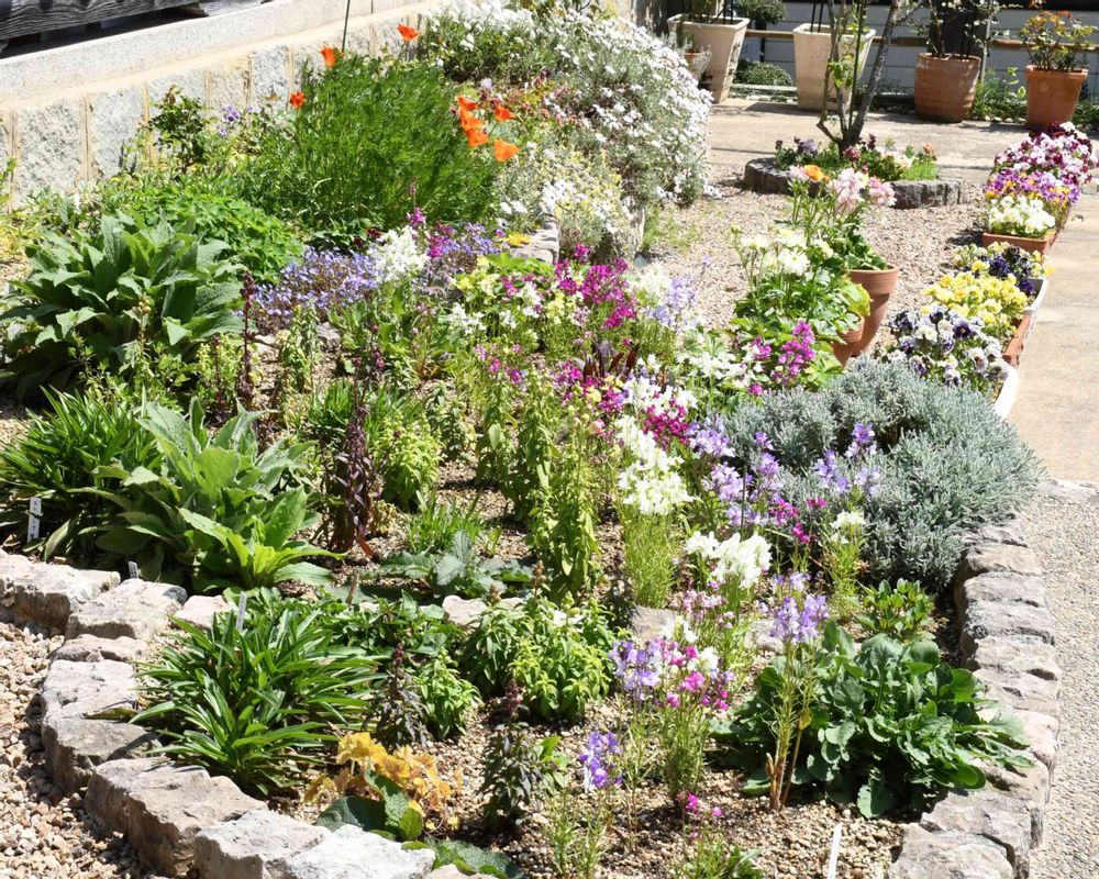 花壇の花がたくさん咲いてきました☺️ 種から育てたリナリアグッピー、宿根草のローダンセマム、ベロニカ・オックスフォードブルー、こぼれ種からのポピーなどが咲いています😊 まもなく種からの金魚草ツィニーも咲きそうです😊