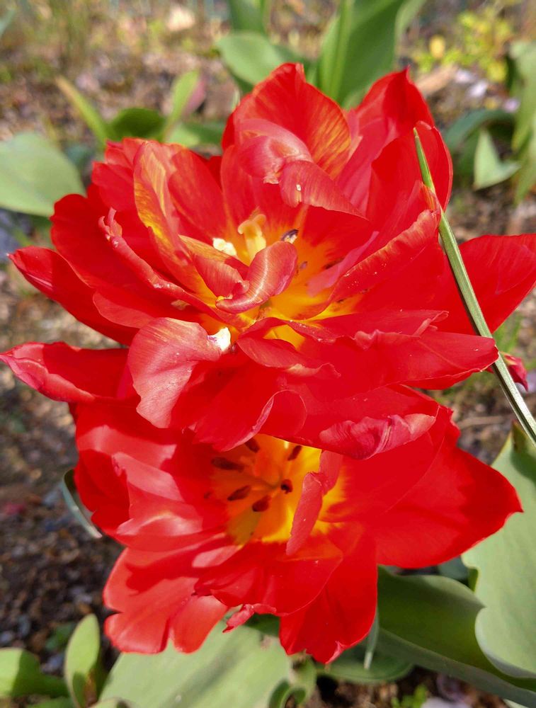多肉の火祭りの様な真っ赤なチューリップさん🌹(*´∀`)♪