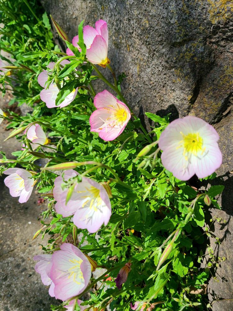 薄紅色の可愛いお花が石垣からお顔を出して❣️