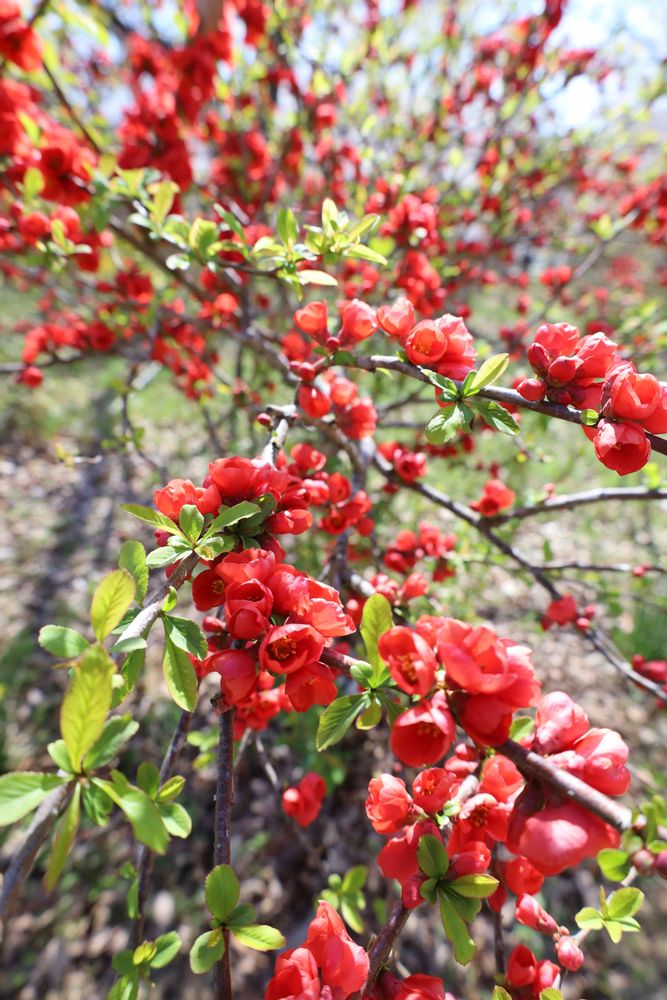 船岡城址公園で鮮やかな木瓜(ボケ)の花が咲いていました🌼🌳🌼🌳