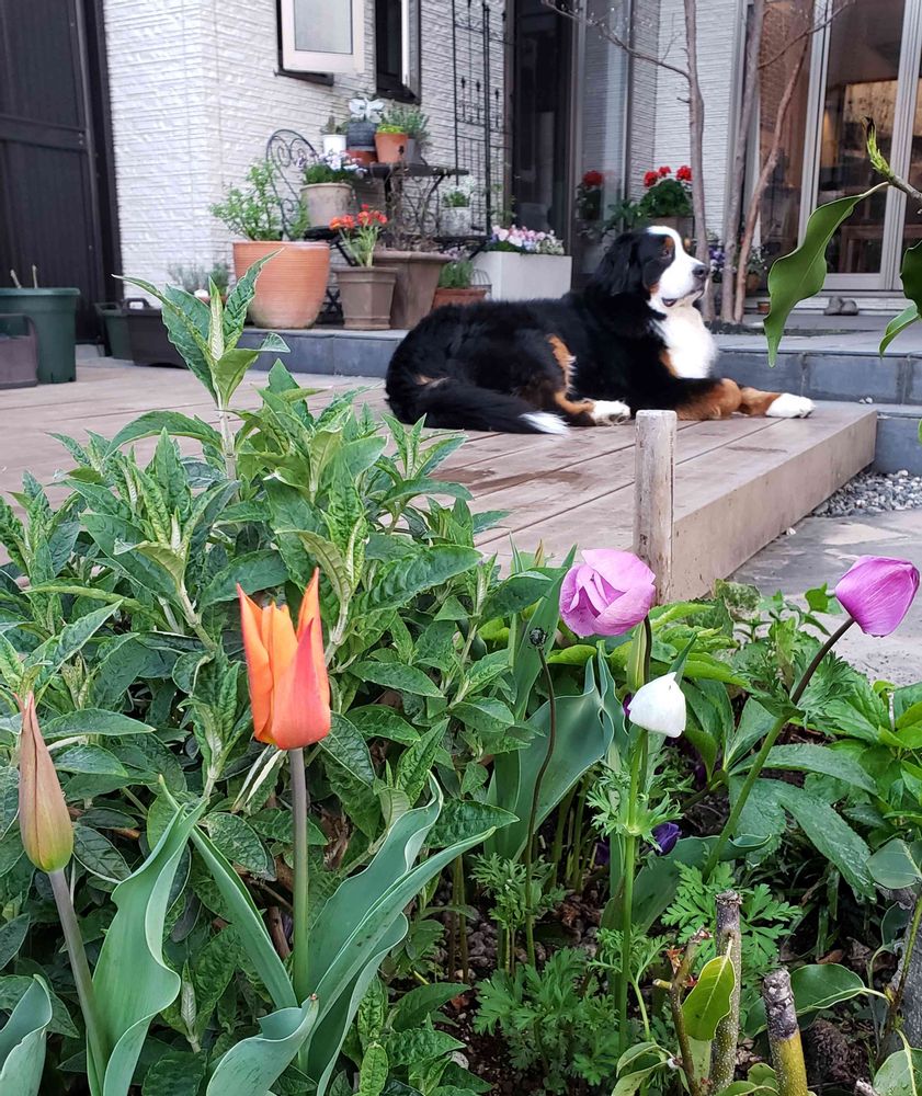 シュっとしてツンとしたチューリップ🌷と我が家のさくちゃん