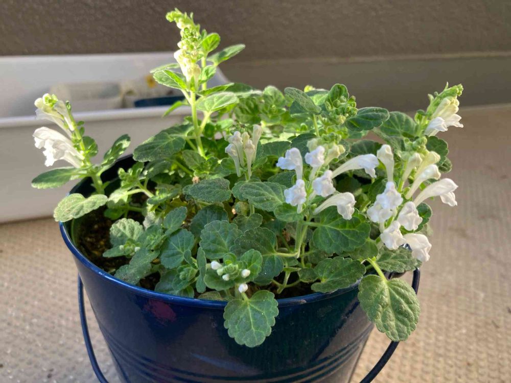 放ったらかしで元気がなかったタツナミソウを5号スリット鉢に植え替えたら葉っぱも大きくなってお花も咲いてきました😆