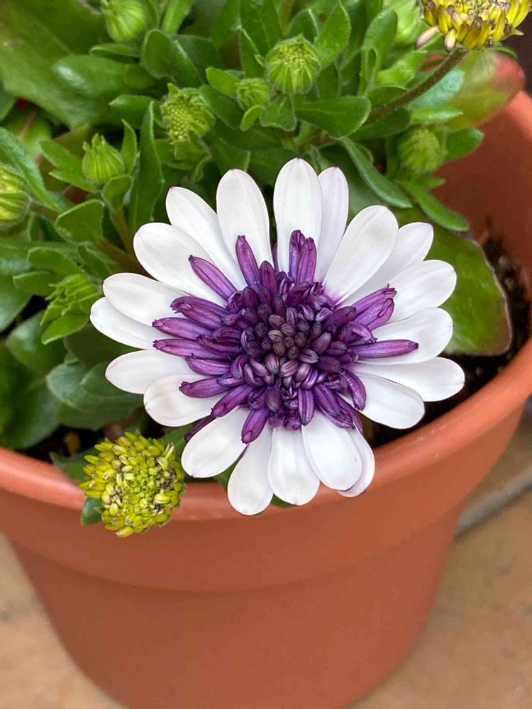 挿し芽したオステオスペルマム3dブルーベリーシェイク咲きました。9日の投稿で、ブル-ベリーシェイクとして、投稿しましたが、あちらはシルバーでした。失礼しました🙇♀️見比べて見て違いに気が付きました😆