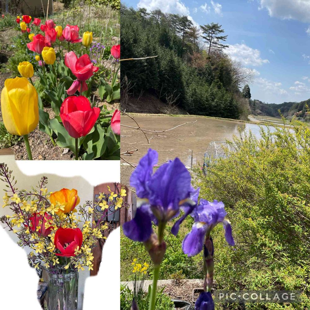 ジャーマンアイリス,チューリップ,八重咲きコデマリの投稿画像