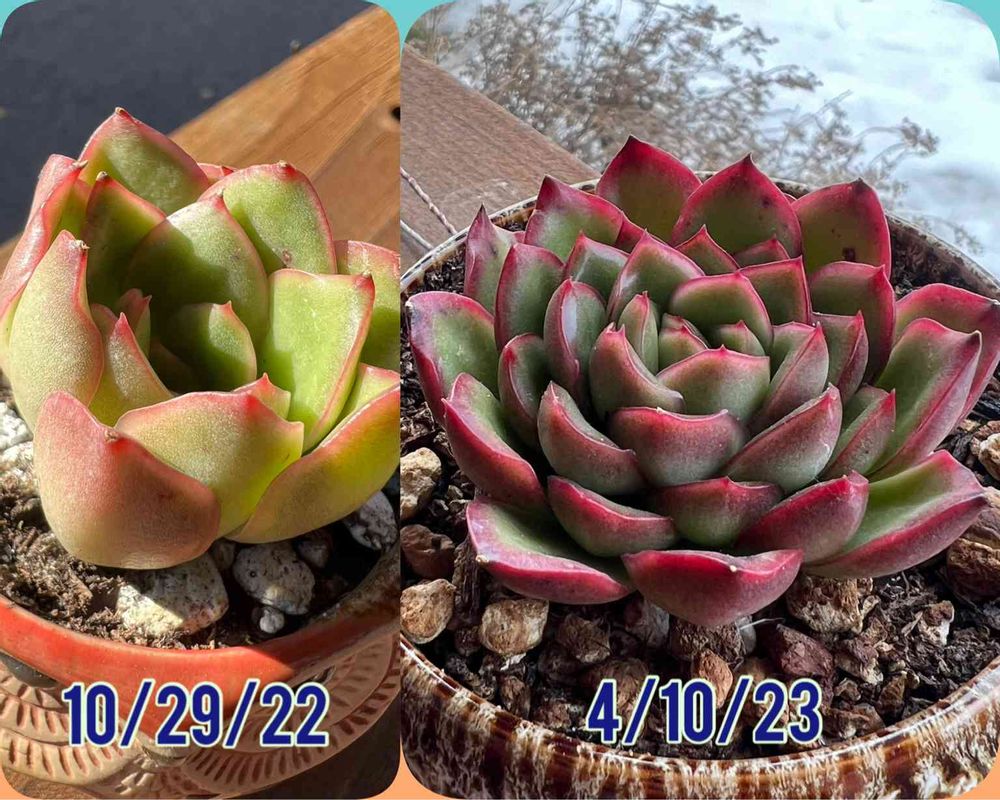エケベリアのこの子、お迎えした時からあんまり変わってないな〜と思って写真比べたら、結構変わってました