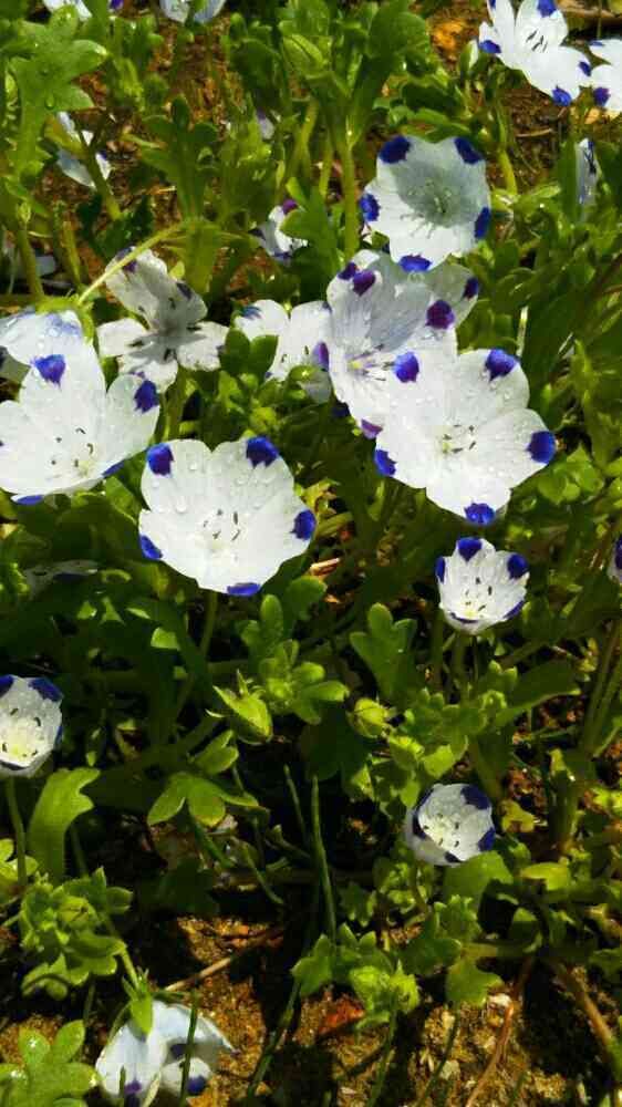 我が家のネモフィラ。今日も元気に咲いてくれてます。去年は、ブルーも一緒に咲いたのに、マグラータだけ生存競争にかったみたい。来年度はブルーを、植え直しかあ。