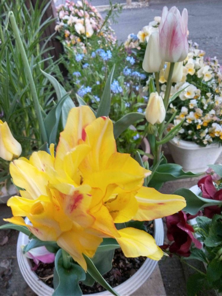 咲く時期も合わせたいですけど古い球根も使っているので無理ですよね‼️色もバラバラです😁