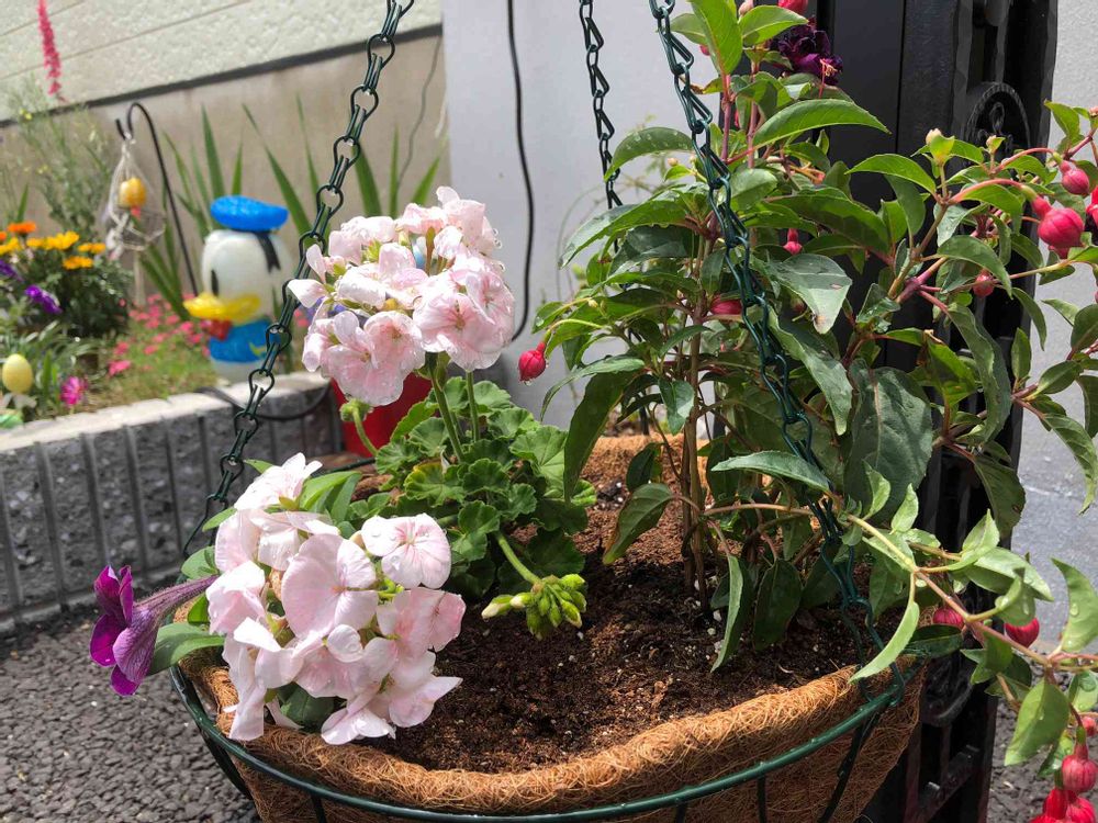 はじめてハンギングバスケット作りました!ちゃんと育つといいなぁ!