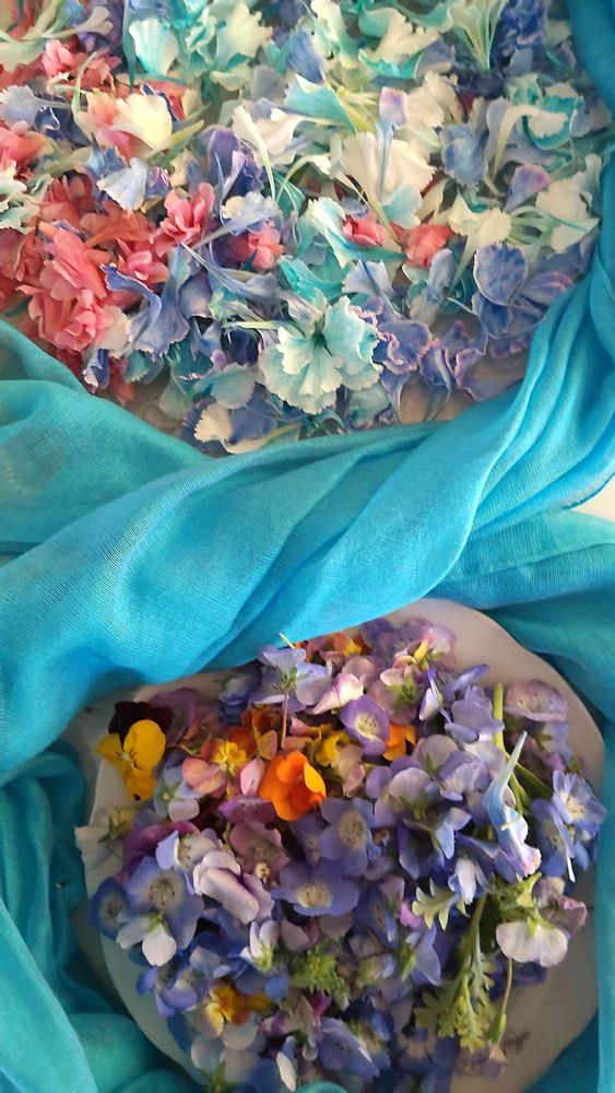 今、摘んできた、ネモフィラ💙と水色の、カーネション💙これから、カリカリに、乾かします🎶🎶