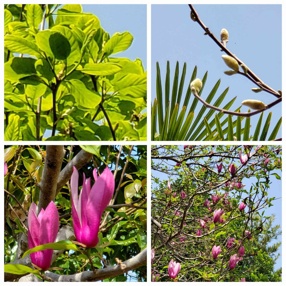 右下 裏庭の紫木蓮も小ぶりな花&噛られたような花ですが、数も増え、回復傾向です。🌺