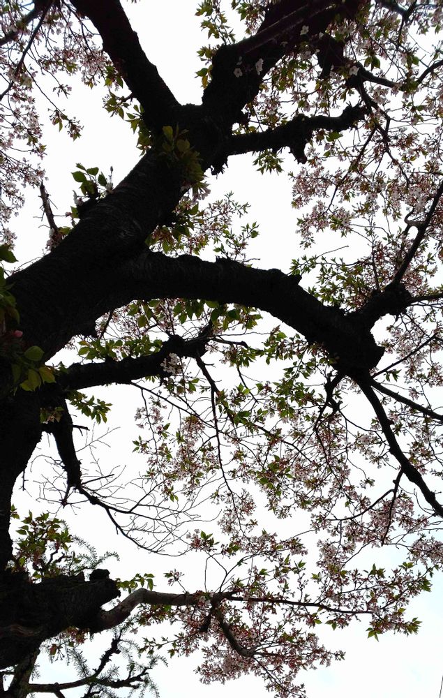終わりかけの桜🌸に乳白色の曇り空。