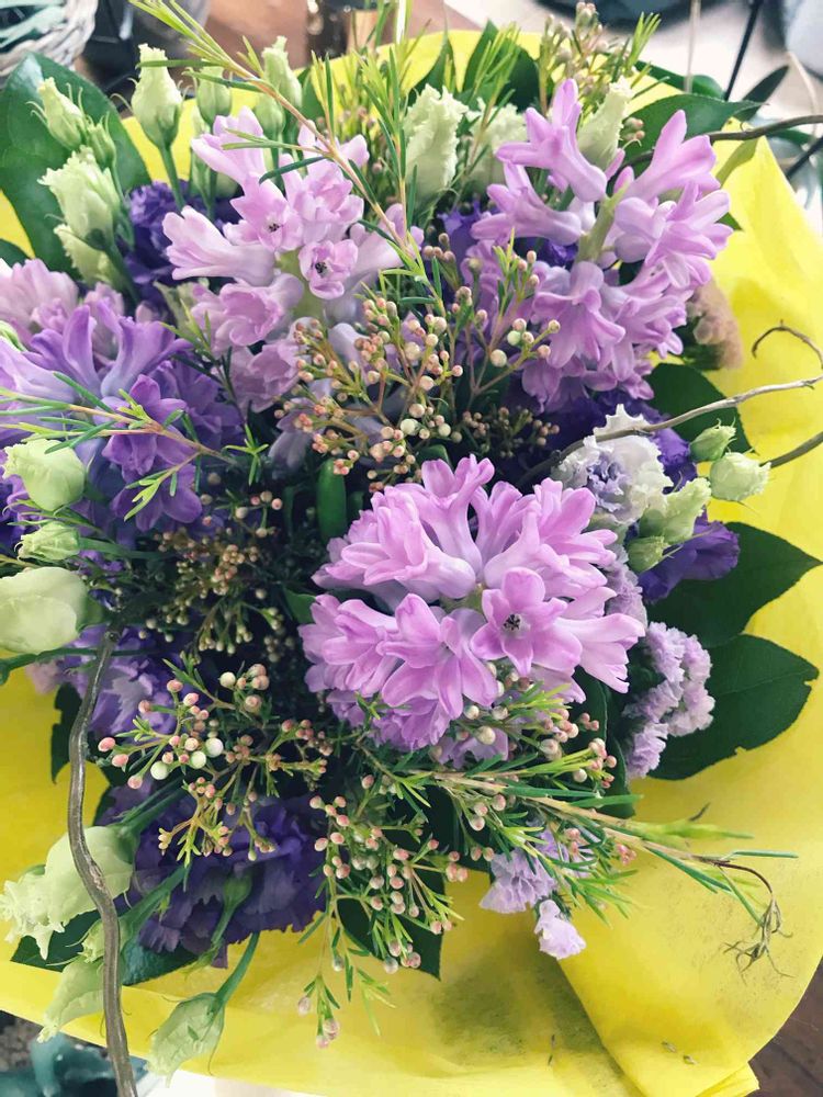 花束💐にヒヤシンスって珍しくないですか?韓国で見ないだけ😅⁉︎キレイな花束素敵ですね♪彼氏さんも素敵〜☺️💕