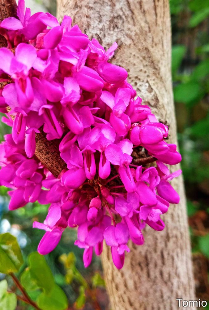 小さな庭のハナズオウの花です。