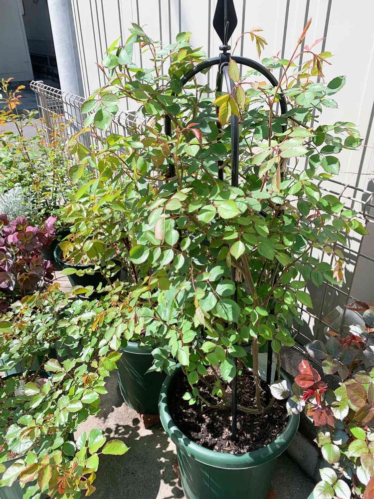 オベリスク仕立てにした河本バラ園のローズローブドール☺️小さな蕾が出来ていて、覗いては、開くのまだかなまだかなって楽しみで仕方ない🤭