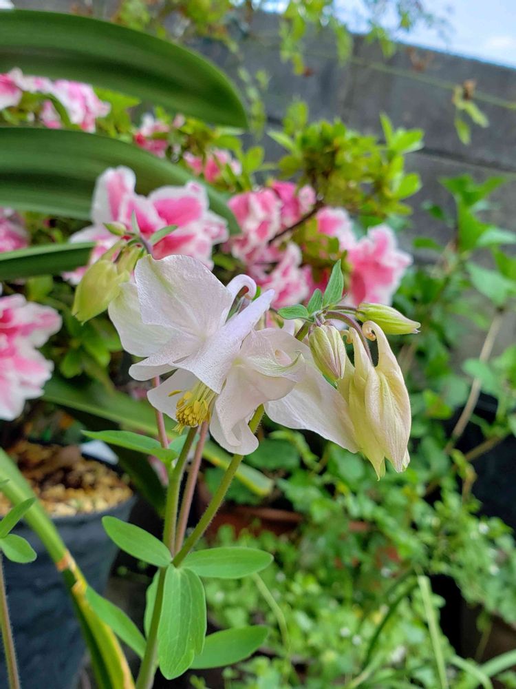 庭のあっちこっちでにょきにょき出てきたオダマキ。