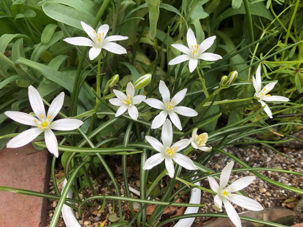 でも葉っぱが出てからなかなか花が咲かなくて…葉っぱの出方もちょっと不自然だったから掘り上げてみたら、すごーく深くに球根があって…浅く植え直して…やっと咲いたらオーニソガラムだったのよ🤣🤣