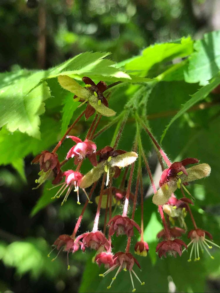 道沿いのお宅の前庭。モミジの花を見ていたら、小さな「プロペラ」が付いているのが有ります!