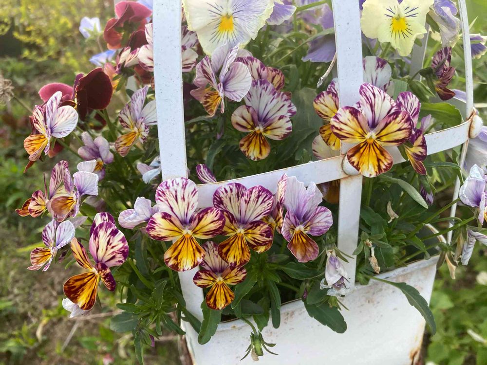 いつも登場の近くの友人宅で目を引かれたのはこの子‼️なんとお庭で取れたタネから育てたそうですが、両親の顔が見たいような色合いで、これだから種まきは辞められないというのもわかる気がしました⁉️