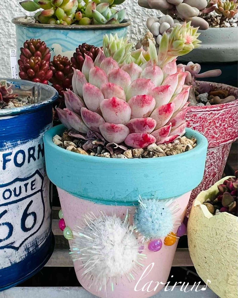 葉裏が可愛い多肉さんが入った鉢、リメ鉢ですよねー