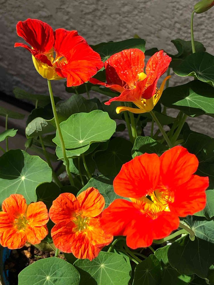 鉢植えのナスタチューム だいぶ咲いてきました。