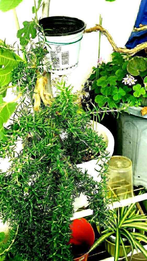 その右下のグレーの鉢がローズマリーなんだけど、左のイチヂクの鉢が邪魔で分かりにくいかな。