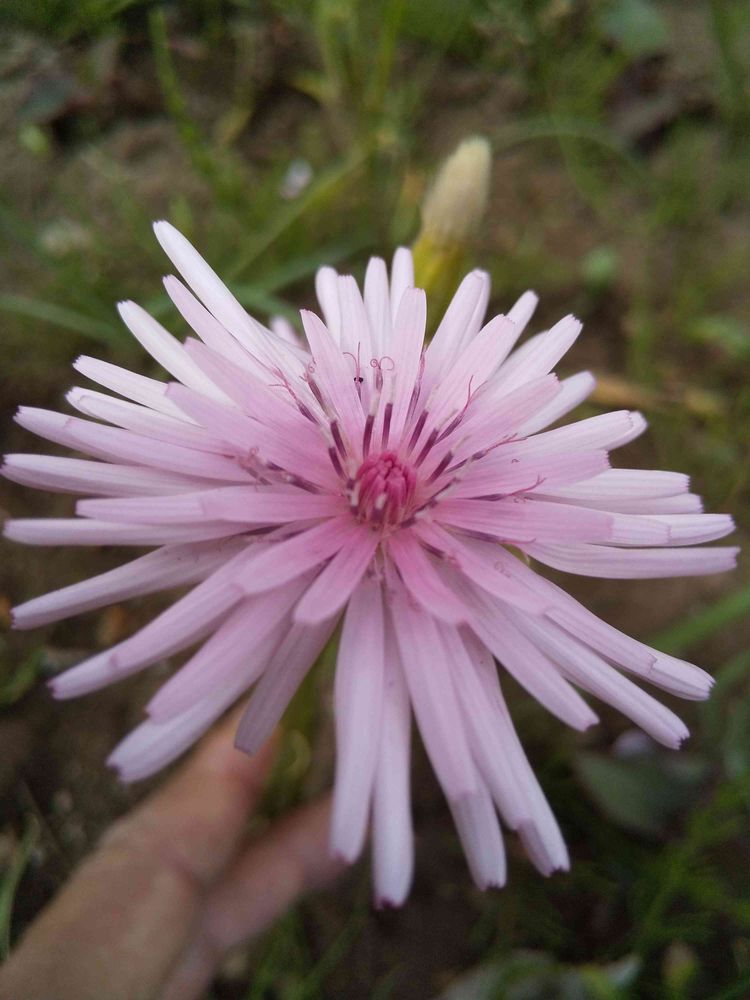 川沿いに 花壇がありますが、ご近所の方が 手入れをしている様です🎵 その中にピンクのお花が✌️「モモイロタンポポ」との 札が付いていました!