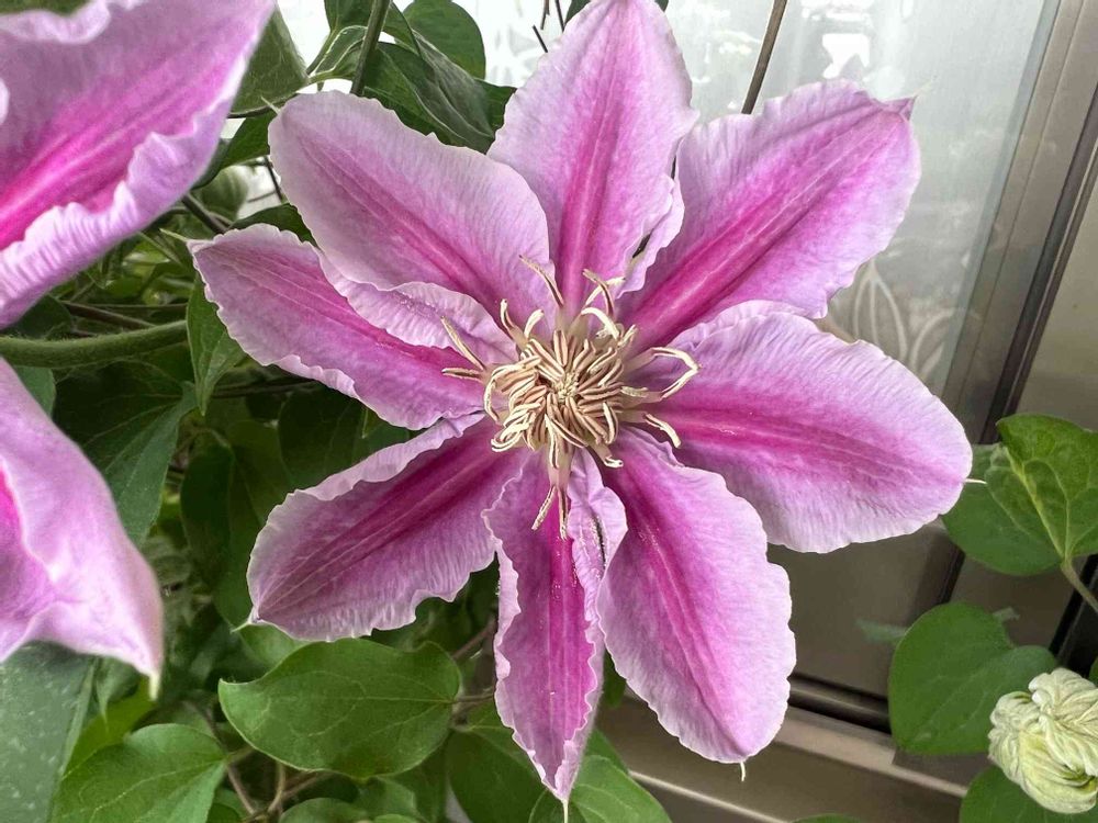 秋に苗が到着したとき、この子だけ3.5号じゃなくてちょっと大きいポットに入ってたし、小さい支柱ついてたから、ほったらかしにしたのと、台風で家に入れたので、この子発信でクレマチス軍団皆うどん粉病なった。特に支柱にちゃんと絡んでなかった葉っぱがボロボロ。鉢底までやばかった。