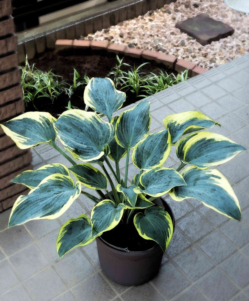 厳選品種大株の美しい斑入りキボウシを手に入れました。置くだけでも「とても洗練された空間」を作ることができました🤗🤔。品種ホスタ・ファーストフロスト🍃🍃🍃。