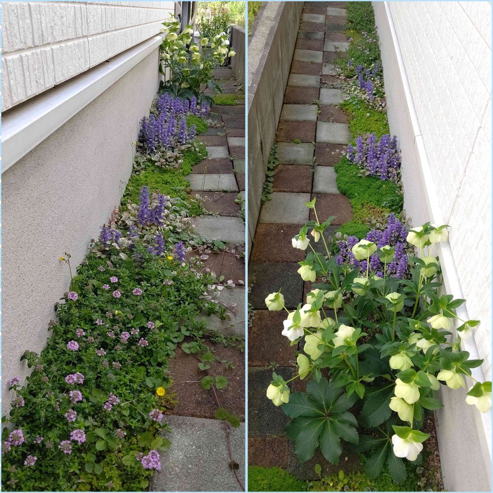 クリスマスローズもアジュガもセダムもタイムもグレコマも雑草も😅凄いことになってた💦暑くなる前にきれいに整えないとヾ(゚д゚;)これはこれでいいと思うけど 道がなくなっちゃう'`,、('∀`) '`,、
