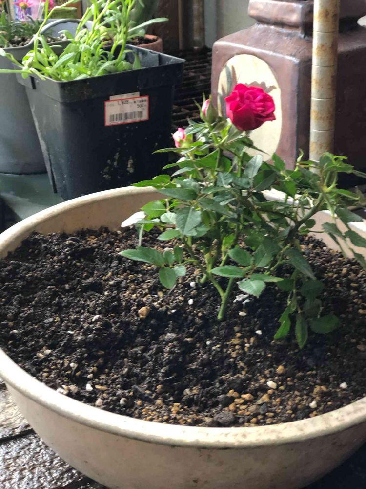 ボールにミニ薔薇を植え込みました。