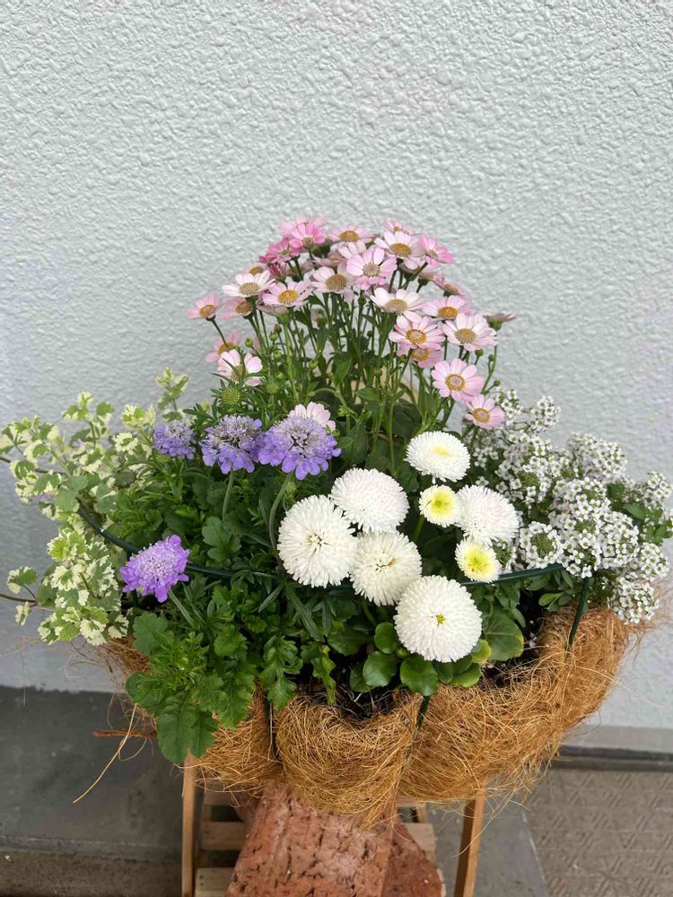この寄せ植えの花盛りはもう少し後かなぁ。