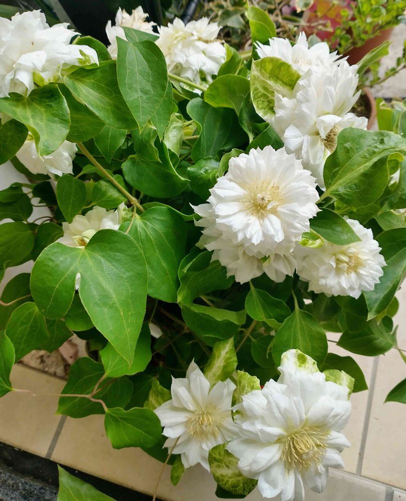 クレマチス🤍ダッチェスオブエジンバラ(キンポウゲ科)清楚な純白🤍に👀と♡を奪われて〜