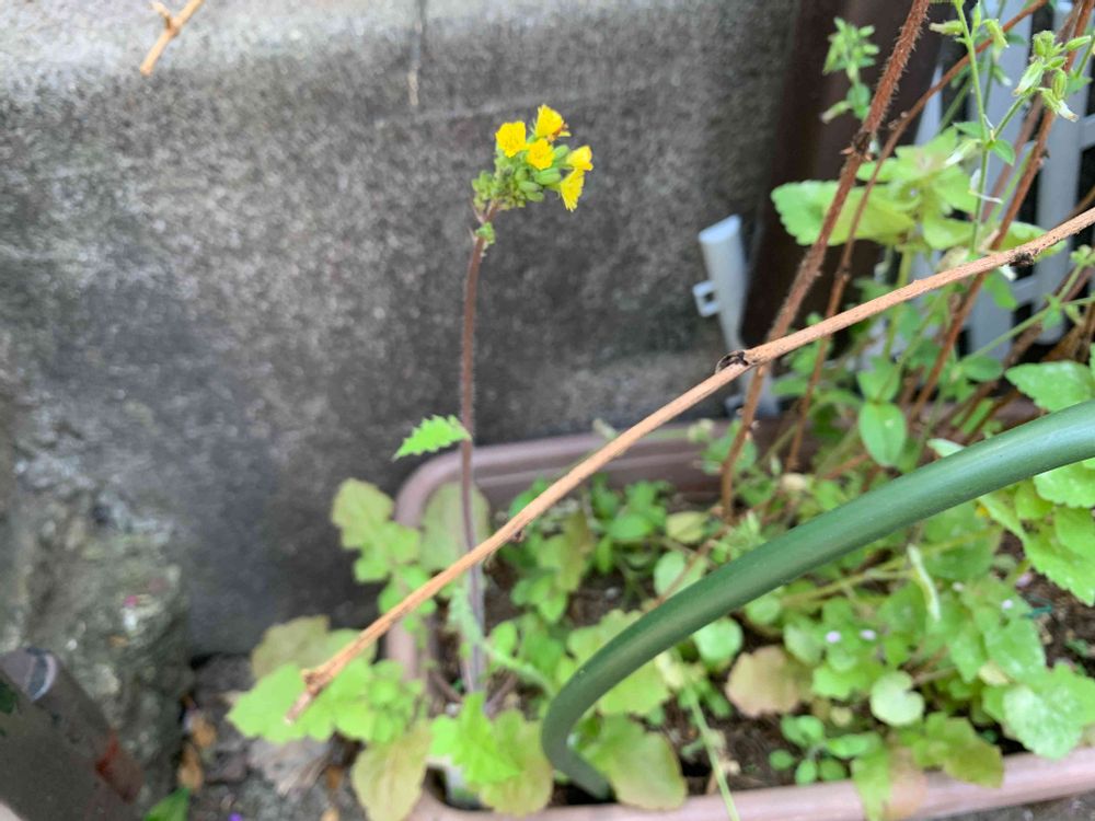 昨年育てていたオジギソウのプランターを放置していたら、こんな花が咲いていました。茎がすごく太くてヒョロ高いのに丈夫そうです。何という花でしょうか?