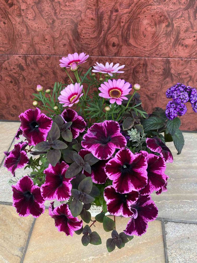 毎日風が強くてハンギングで作ったペチュニアの寄せ植えも一旦地上に降りました😅