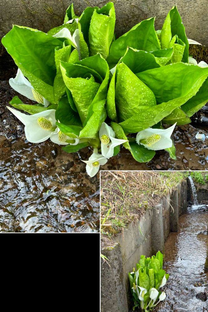 水芭蕉はまず、きれいな水ですね。何年か前、郵便局で売っていたのを、頑張って育てようと。全くだめでした。