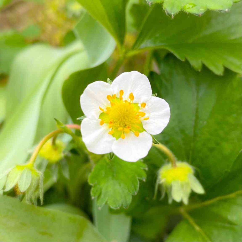 イチゴのお花🍓咲いたお花を全部人工受粉してます🐝