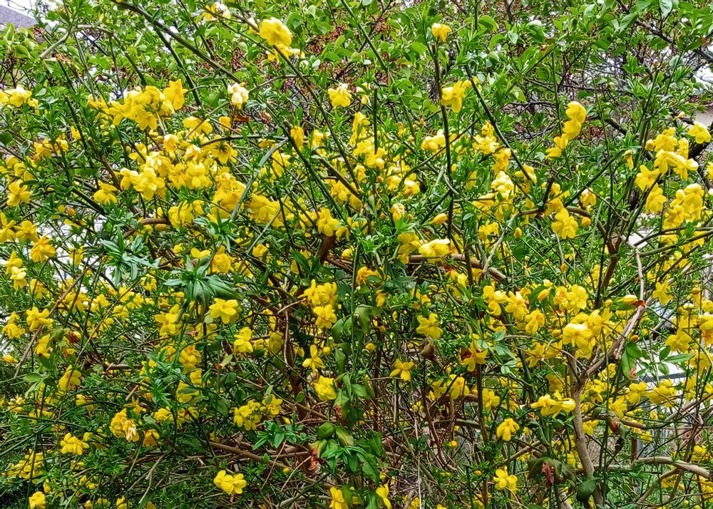 散歩道(京都丹波亀岡 南郷公園)の黄梅が最盛期を迎えました。