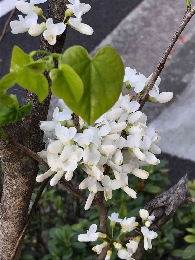 4/4撮影。歩道の街路樹、此処一箇所だけどういう訳か蘇芳が植えられています。