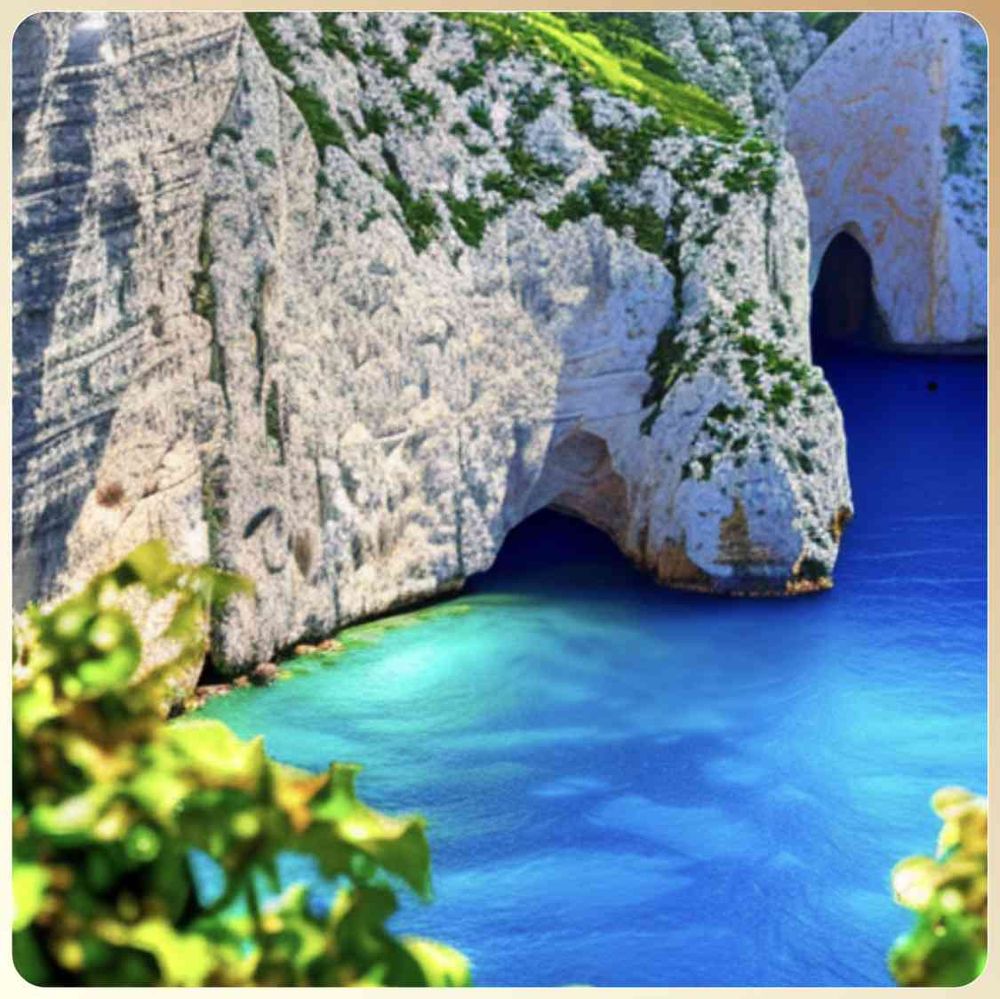 10K,高品質,写実的,油絵, 風景画 , 幻想的,リアル, 絶景スポット, ザキントス島 ,青の洞窟,ギリシャ