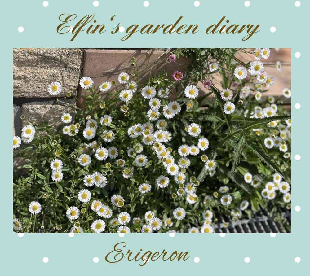 今日の1枚目の投稿picは、玄関に登る階段とポストのあるレンガ積みの柱と道の排水溝との境の僅かな隙間にこぼれ種で勝手に生えた‘’エリゲロン‘’。