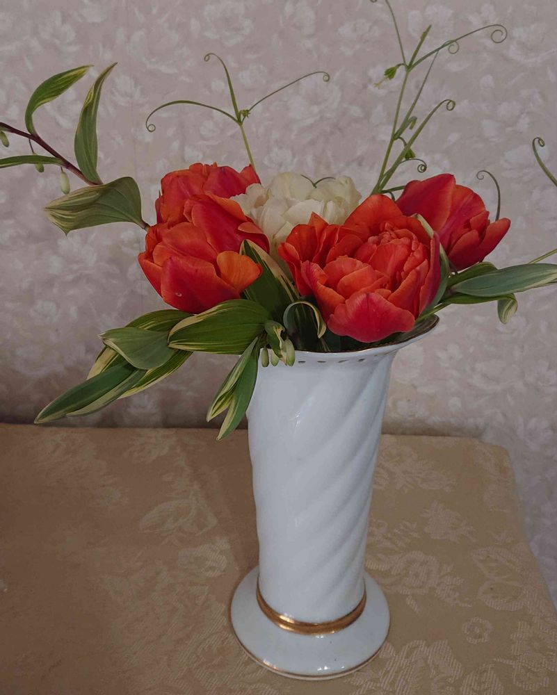素敵な花瓶に、素敵な八重咲きチューリップが咲きました