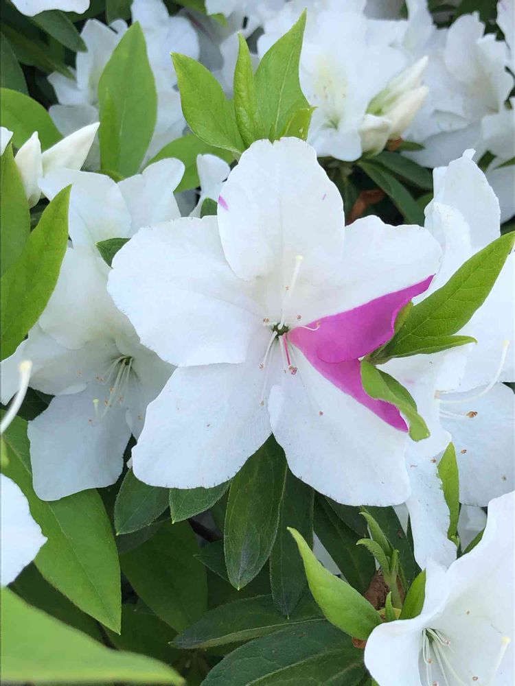 白いツツジの中に、一輪のピンクのラインが入ってるのを見つけました🌿🤍💗