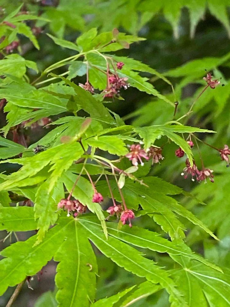 イロハモミジの葉のしたに沢山ぶら下がってた花が無い⁉️