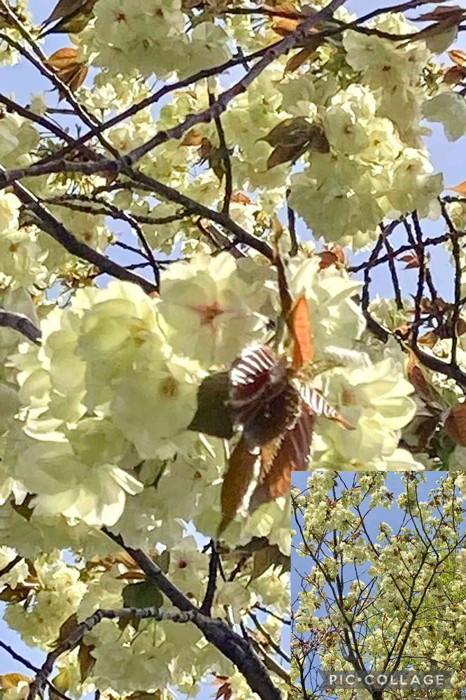 寒梅さんの鬱金桜、池公園の御衣黄桜