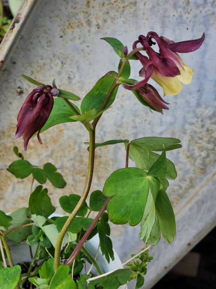このオダマキはこぼれ種では出没せず、我が家のオダマキは西洋オダマキ黄色がいたるところに出没、だいたい鉢の中なんだけどこれもまた小さくてけなげで風情あります😊