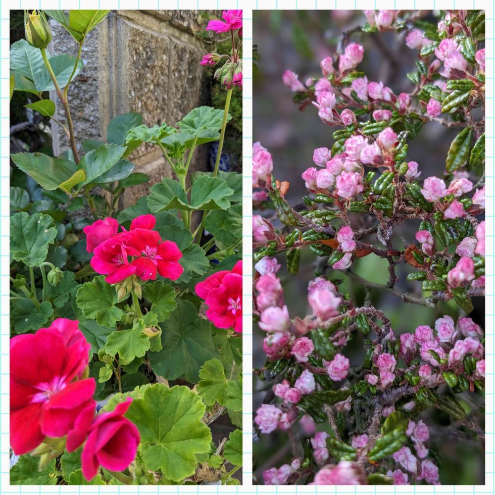ゼラニウムと挿し木の黄色いバラの寄せ植え✌️👀