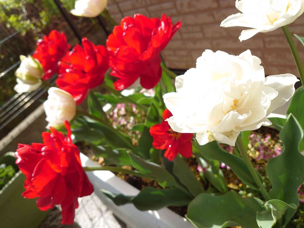 我が家の八重のチューリップ3色ミックスがついに咲きそろった!